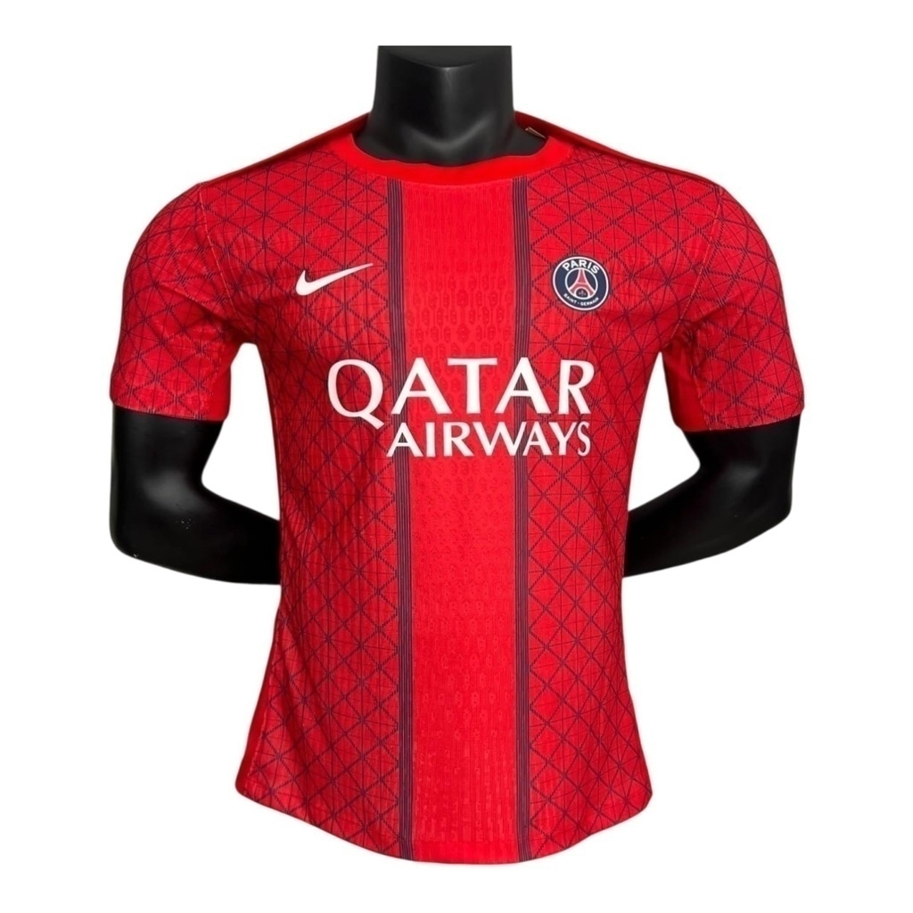Camisa Paris Saint-German Pré-jogo 25/26 - Jogador Nike Masculina - Vermelha com detalhes em azul